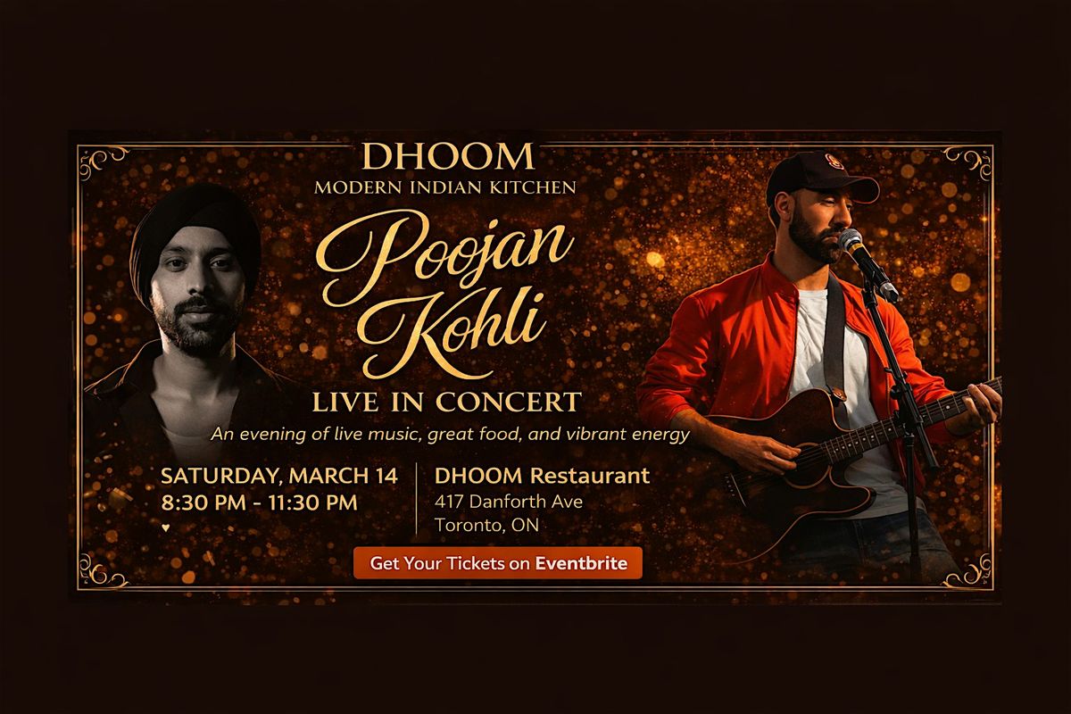 Poojan Kohli brings his soulful voice and acoustic performance to the stage for a special night of Bollywood and contemporary music.
