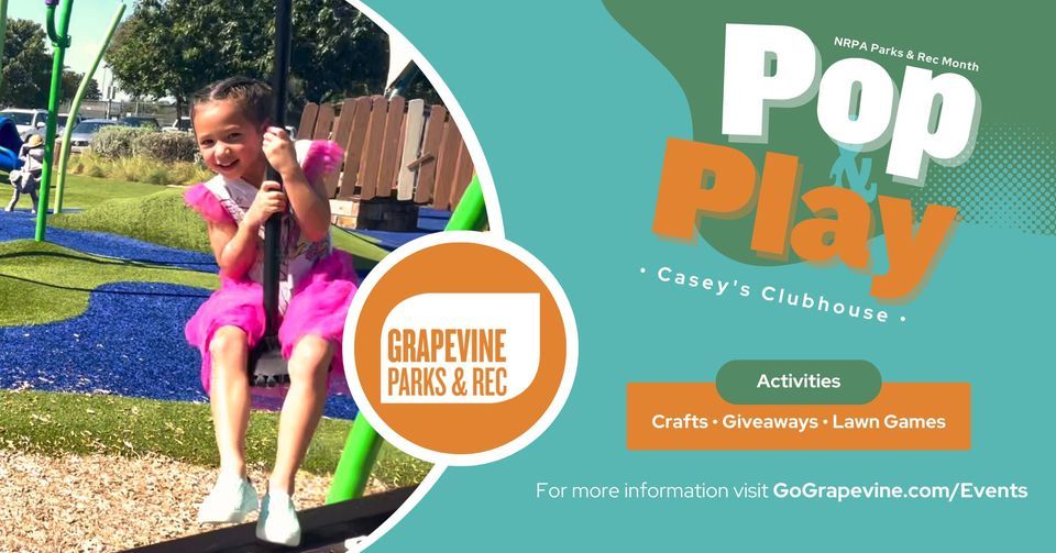 Join Grapevine Parks and Recreation as we POP UP at City Parks during the week of July 17th to celebrate Parks and Recreation Month! ??Find us at different parks Monday, Wednesday, and Friday that week with food, take-home crafts, lawn games, and giveaways for the first 50 people in attendance. ??