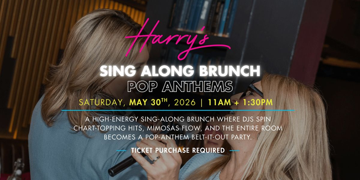 Expect massive pop hooks everyone knows by heart, a room full of voices singing together, and a high-energy atmosphere that turns brunch into a party. DJ Chuck T keeps the hits coming while guests sing along, sip cocktails, and enjoy brunch favorites from the Harry’s menu—with fun props like microphones, sunglasses, and more available as part of the experience.