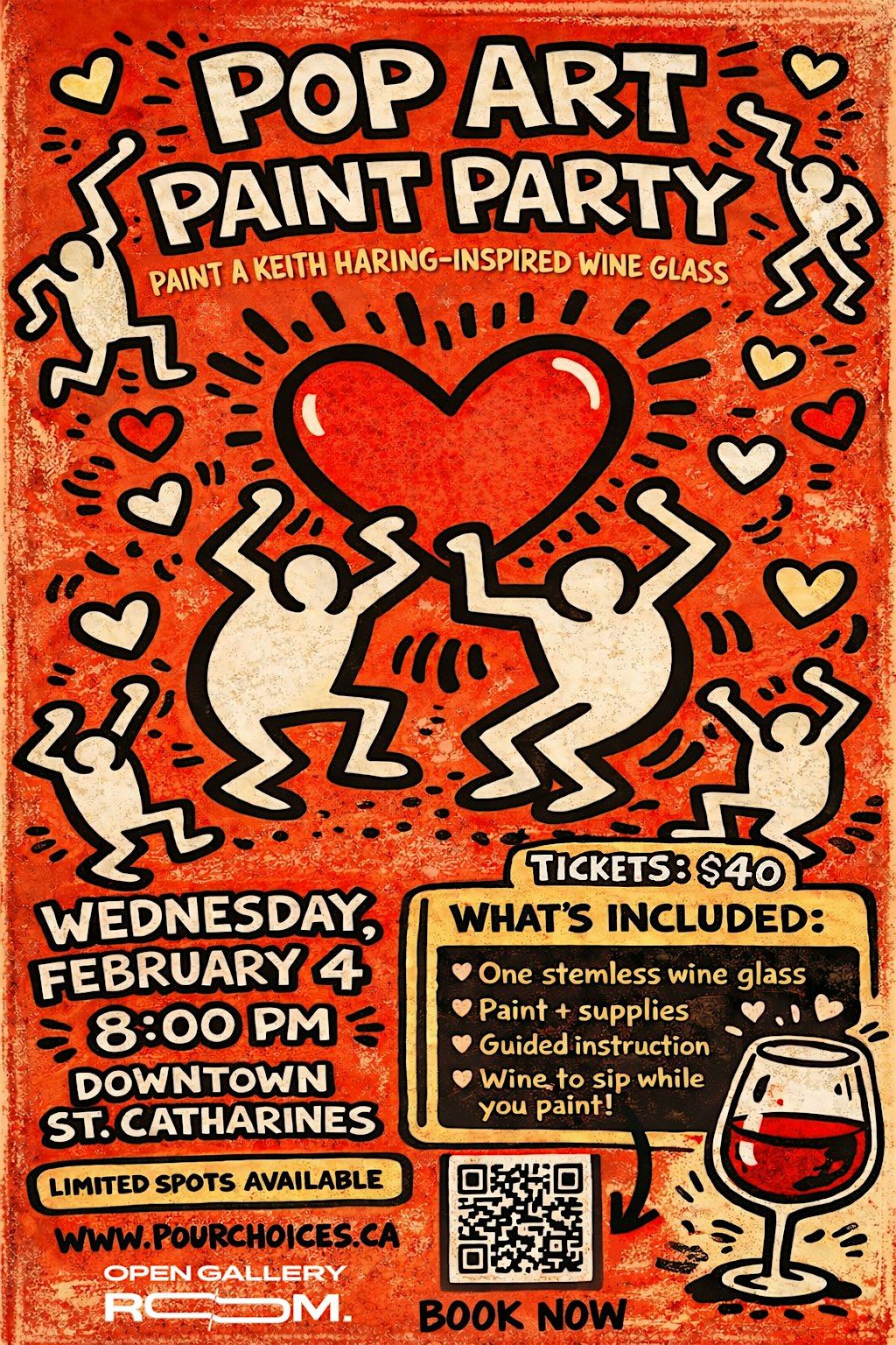 Join us for a fun, low-pressure pop art paint party where you’ll paint a bold, Keith Haring–inspired wine glass using playful lines, hearts, and vibrant shapes. This guided workshop is beginner-friendly and all about having fun, not being perfect.