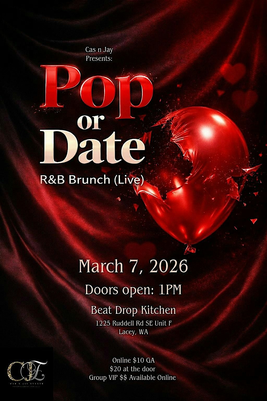 Join us for an awesome in-person vibe at the Pop or Date R&B Brunch! Dive into smooth beats, good eats, and watch live to witness love at first sight. Whether you're looking to chill, meet new folks, or just enjoy some tasty tunes, this is the spot to be. Don’t miss out on the perfect blend of R&B vibes and brunch delights!