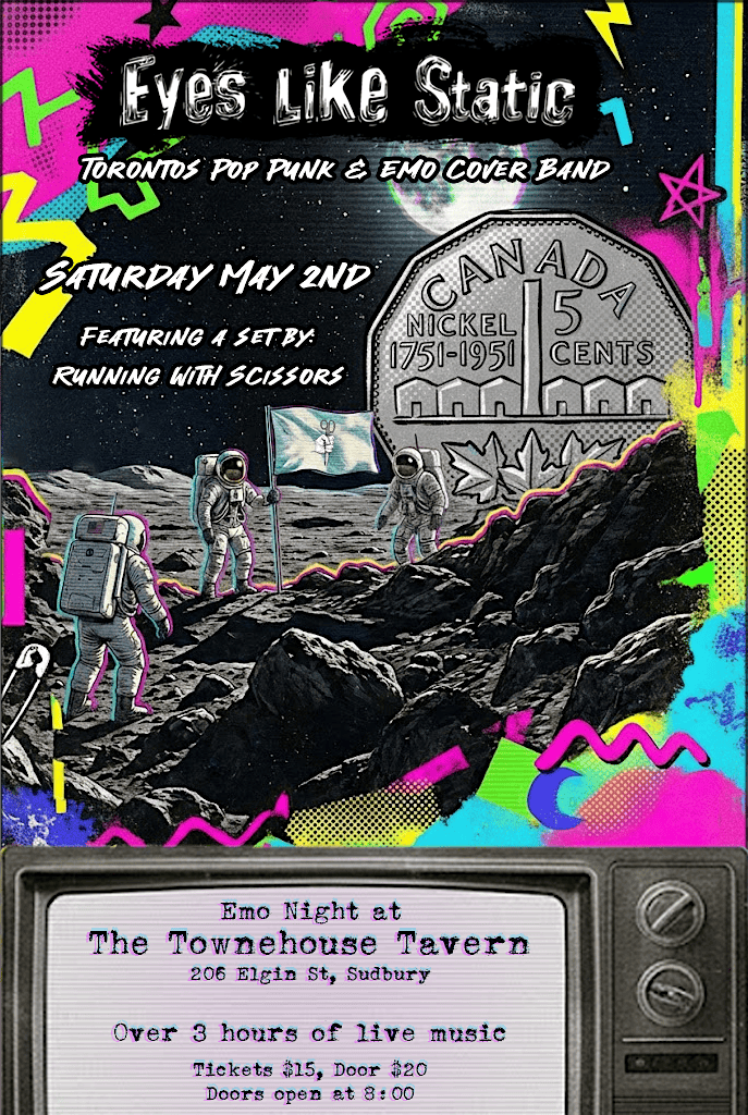 Grab your tickets for Toronto's premier pop punk and emo tribute band, Eyes Like Static as they play their first Sudbury show! Joining them will be local Sudbury act Running With Scissors.