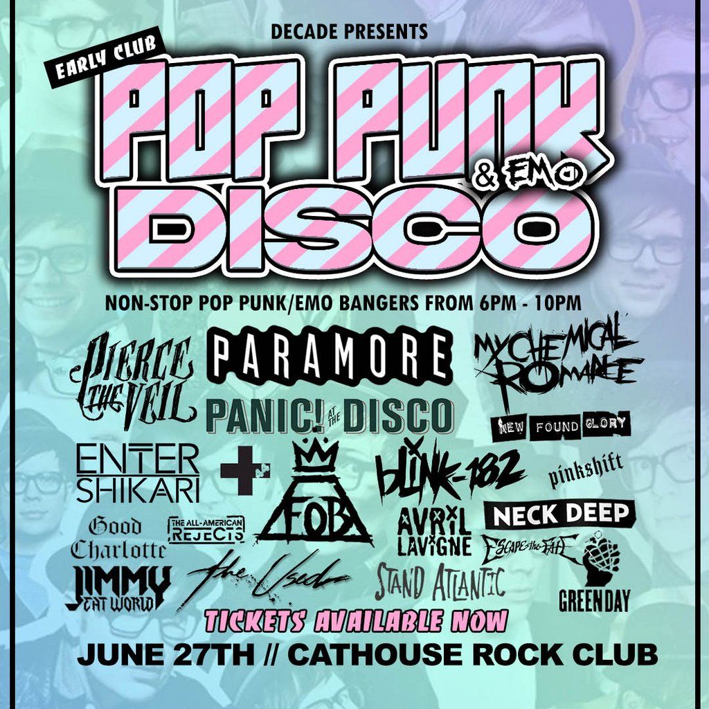 The pop punk/emo club for the alt kids (ahem) that need that early finishMusic Genres : Emo, Pop Punk, Alternative Pop
