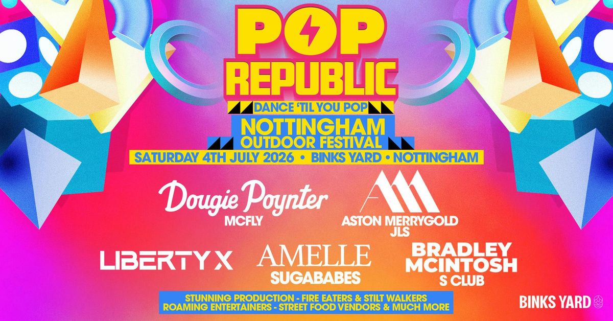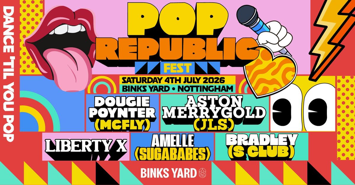 Pop Republic Fest 💖🎤On Saturday 4th July, get ready to relive the ultimate pop era as Pop Republic Fest lands at Binks Yard, Nottingham for a full-scale outdoor celebration of late 90s and 00s pop classics.