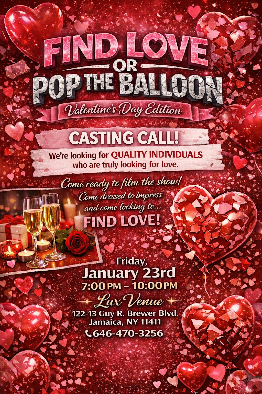 “Find Love… or Pop the Balloon” is a live dating-style game show where singles meet, flirt, answer fun questions, and see if they can spark a real connection — right in front of the audience and on camera.