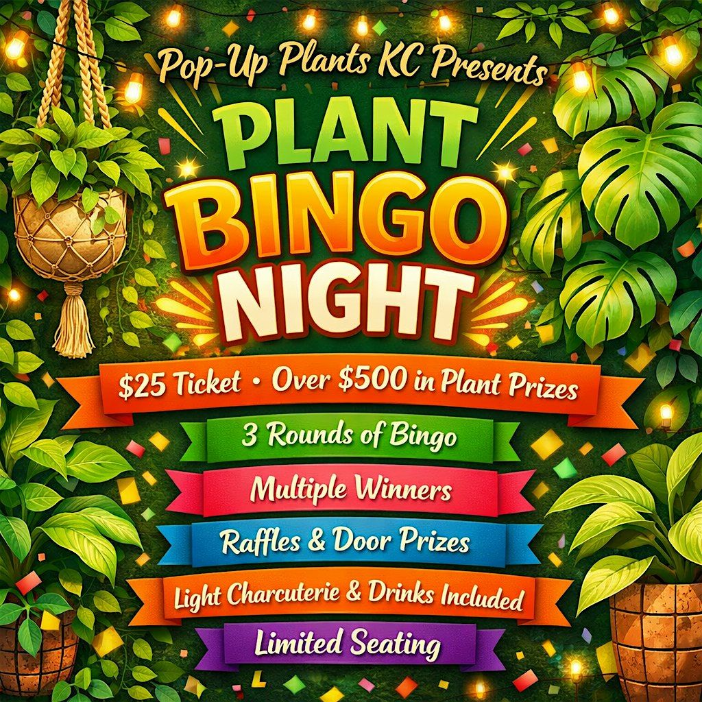 Enjoy 3 extended rounds of bingo, raffles, door prizes, light charcuterie, drinks, and over $500 in plant prizes. Limited seating!