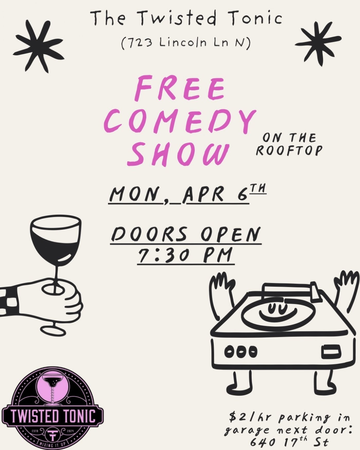 Free pop-up comedy show in Miami Beach! Come out to the Twisted Tonic rooftop and see the best comedians Miami has to offer.