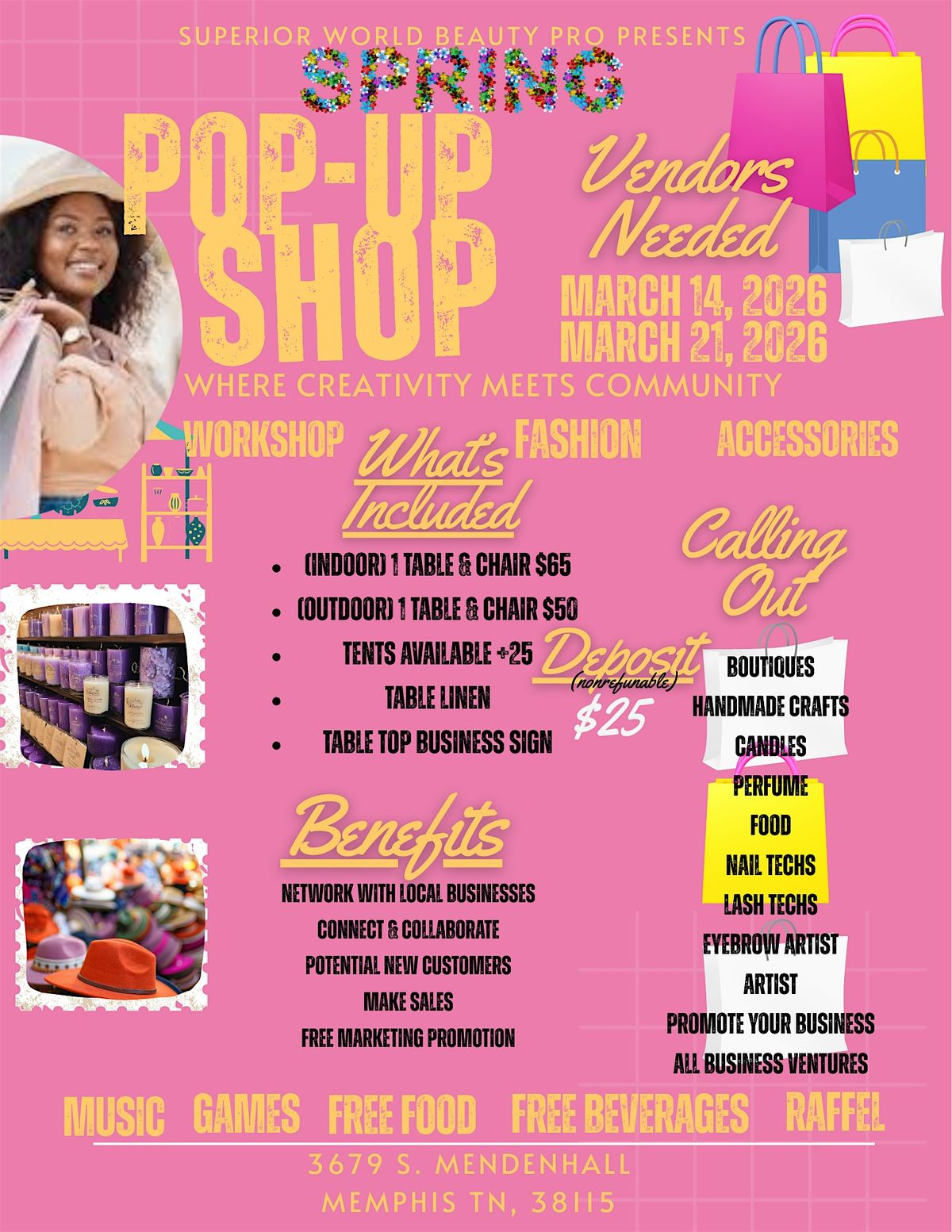 Come join us in person for the Pop Up Shop “Bring the Spring”! It’s the perfect chance to freshen up your style and celebrate the season. Discover unique finds, chat with local makers, and soak up all the spring vibes. Don’t miss out on this fun, laid-back event designed to get you ready for brighter days ahead!