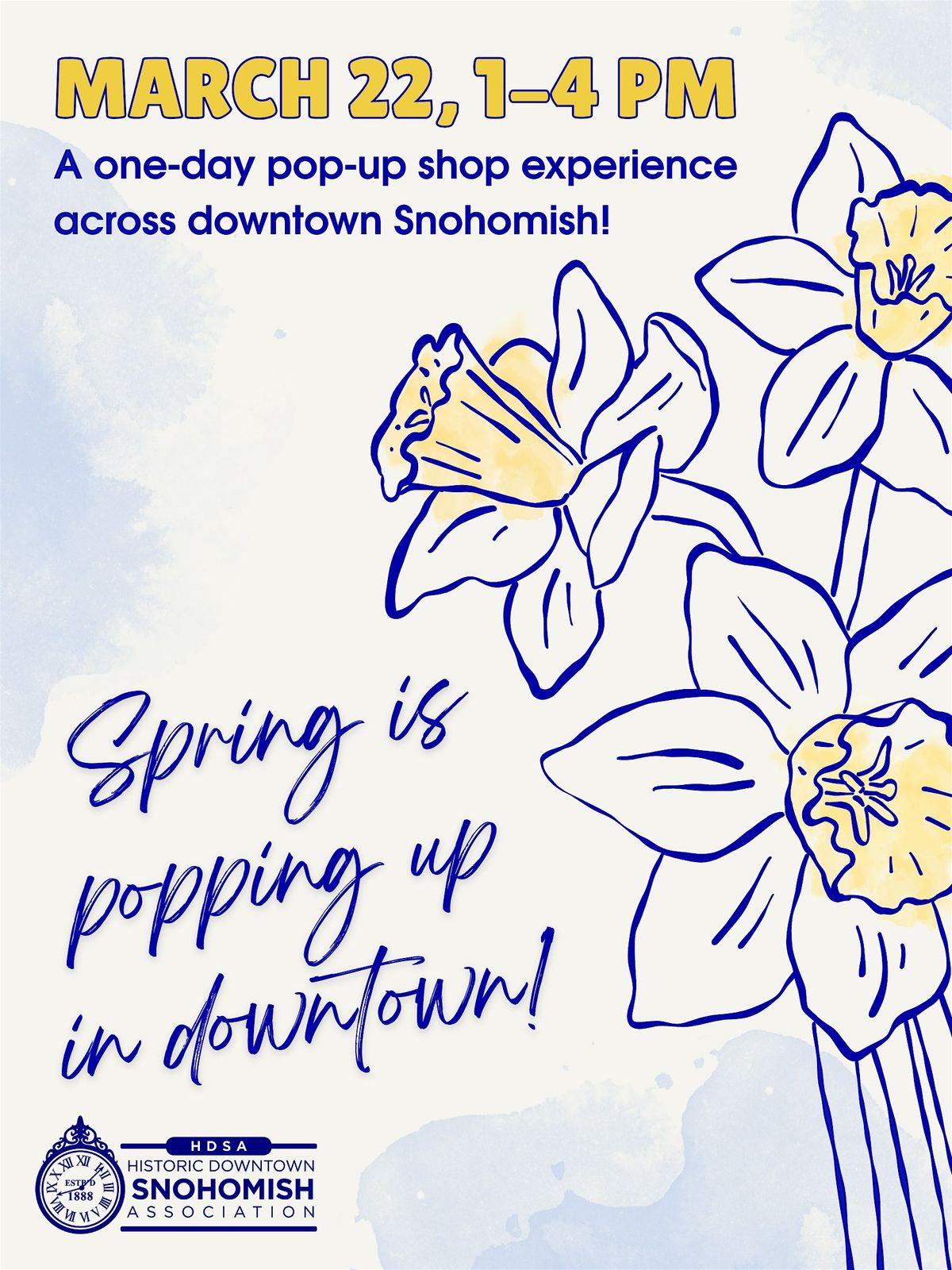 On Sunday, March 22 from 1–4pm, local shops will open their doors to host small pop‑up vendors for a one‑day special shopping event. Explore all your favorite downtown stores and discover new local makers, artisans, and small businesses tucked inside. Save the date for March 22 and come see what's popping up in downtown Snohomish!