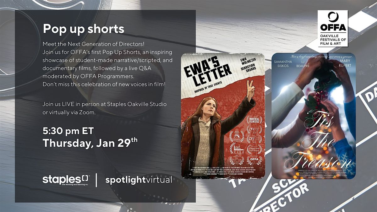 Join us for OFFA’s first Pop Up Shorts, an inspiring showcase of student-made narrative/scripted and documentary films, followed by a live Q&A moderated by Lorenia Snowball (OFFA). These shorts screenings will be presented in partnership with Staples Canada—spotlighting emerging voices and new perspectives in storytelling from a diverse range of gifted student filmmakers.