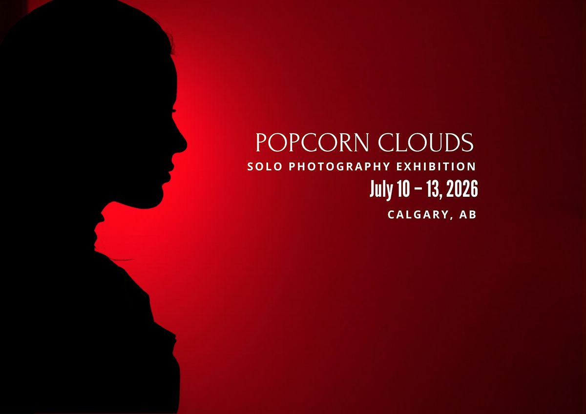 Popcorn Clouds is a solo photography exhibition by Calgary-based artist Winner Brave, exploring the emotional terrain of limbo — the suspended space between who we were and who we are becoming. Through striking portraiture and conceptual imagery, the work interrogates performed joy versus interior reality, asking what it means to smile through uncertainty and float in a life not yet fully landed.