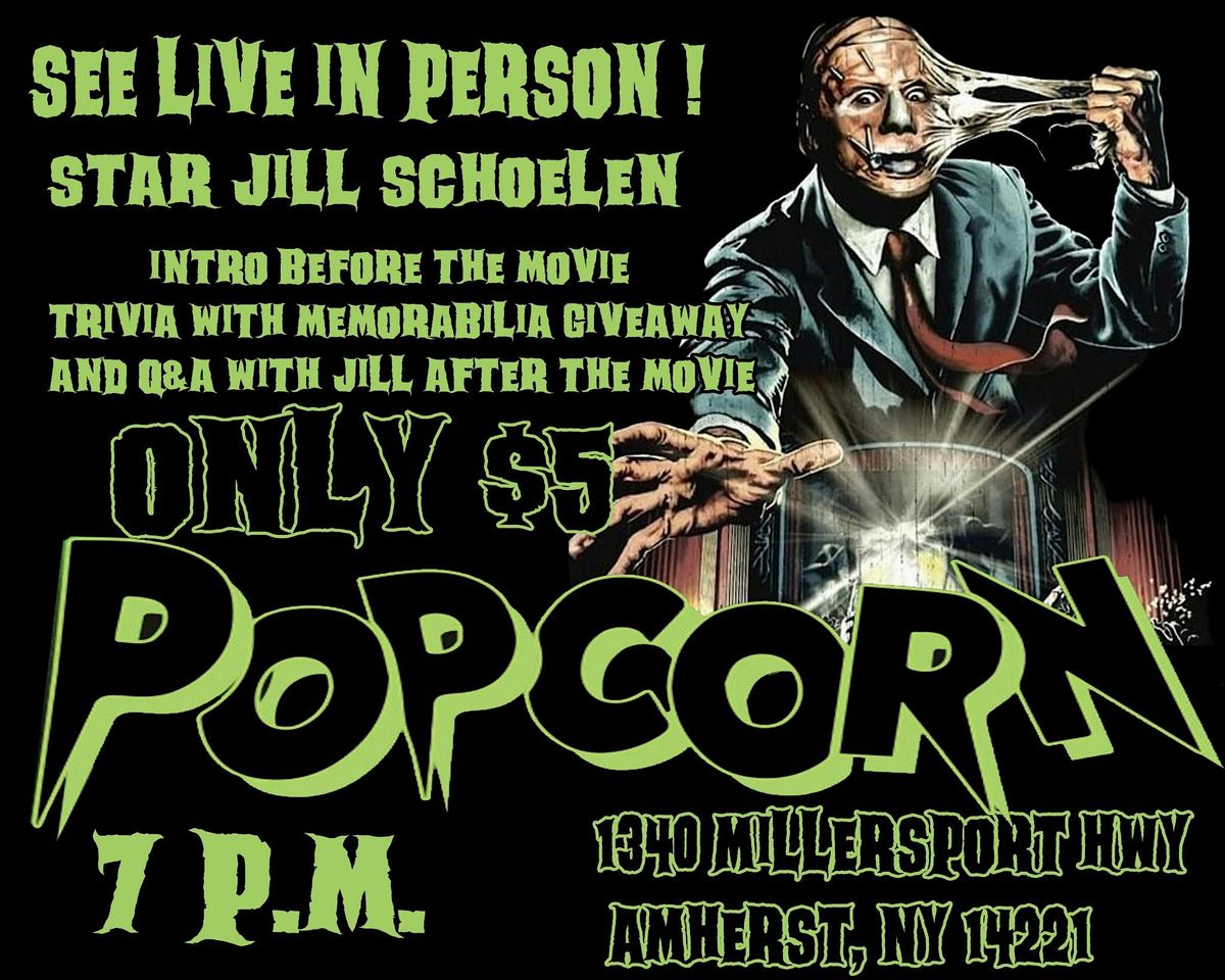 Come see the cult classic Popcorn with the star of the film! Jill Schoelen will be introducing the movie as well as doing trivia on her own film career. Do you know Jill's career better than Jill? Come find out! Jill also will have EXCLUSIVE merch those that attend FREE of charge. And stay after the film for a Q&A with Miss Schoelen.