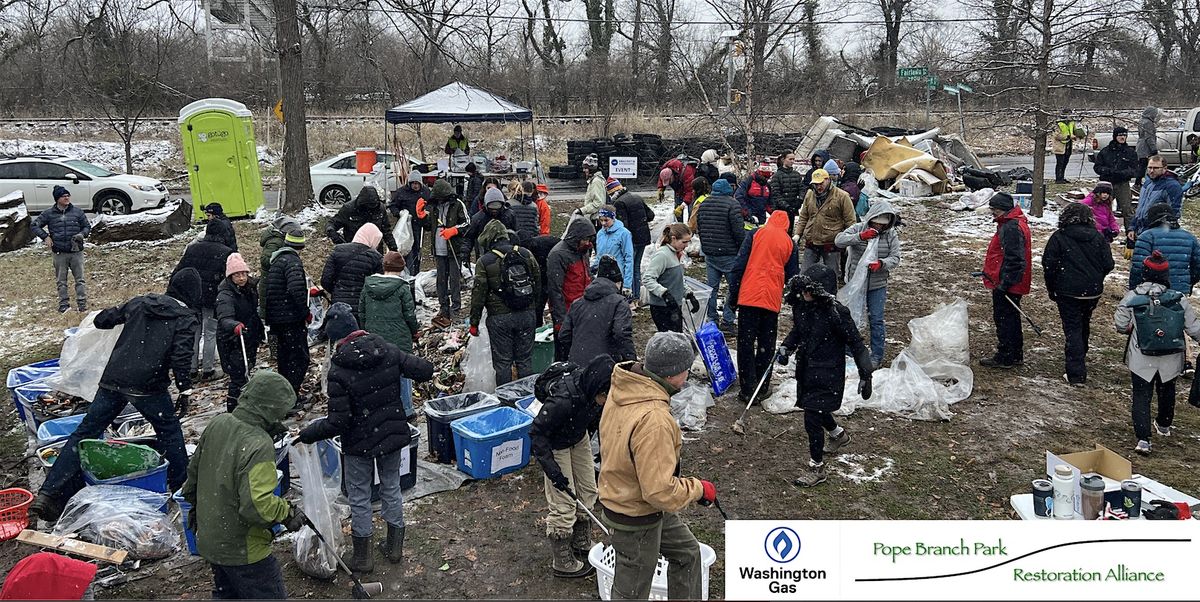 This cleanup is in partnership with Pope Branch Park Restoration Alliance and funded by Washington Gas.