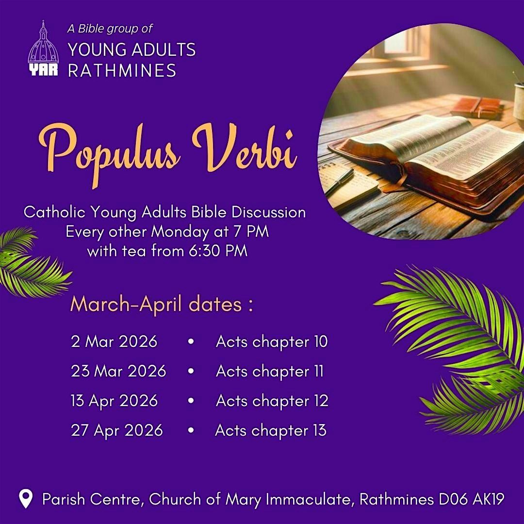 We meet every other Monday evening at Rathmines Parish Centre (D06 AK19). Tea from 18h30, study starts at 19h00.