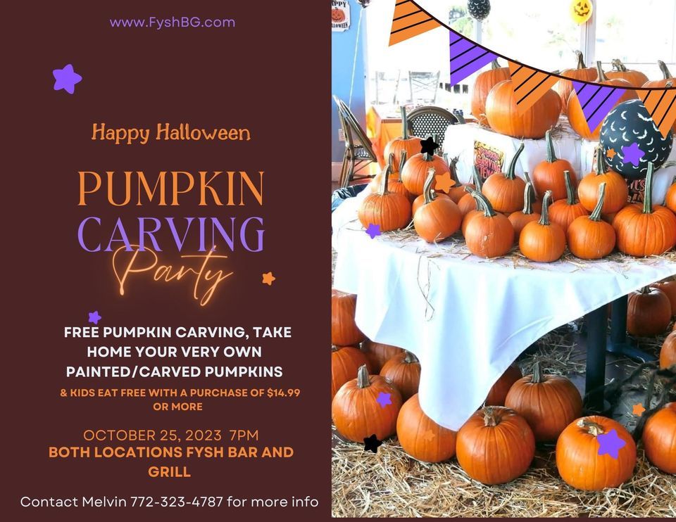 ?? Trick or Treat! Join us for a spook-tacular evening on October 25th 2023, at both Fysh Bar and Grill locations. Bring the little ghouls and goblins because it's KIDS EAT FREE night! ?? With a purchase of $14.99 or more, your kids will enjoy a delicious meal on the house.But that's not all! Get into the Halloween spirit with FREE PUMPKIN CARVING for the whole family. Carve out your scariest, silliest, or most creative designs and take your masterpiece home to display proudly. ?✨