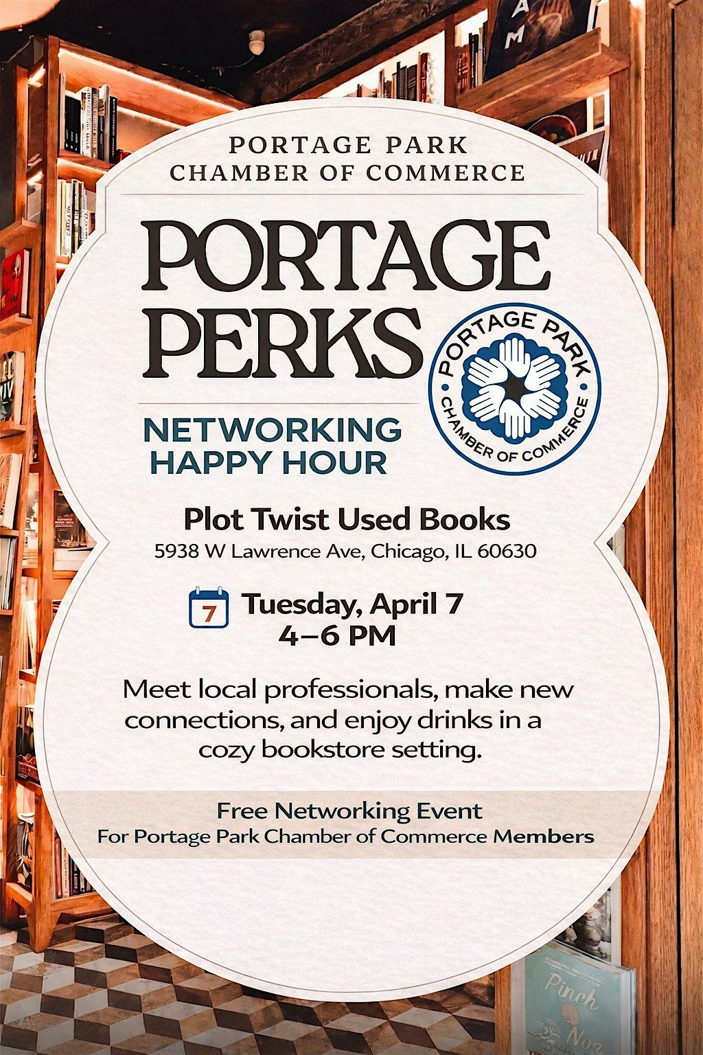 Join the Portage Park Chamber of Commerce for our next Portage Perks Networking Happy Hour at Plot Twist Used Books! This relaxed networking event is a great opportunity for Chamber members to connect with fellow local professionals, build new relationships, and strengthen our business community.