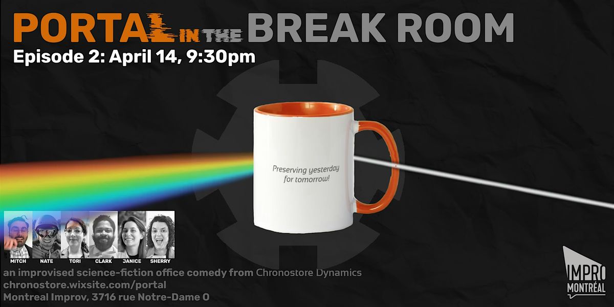 Portal in the Break Room is a four-episode, improvised science-fiction office comedy built from audience suggestions, six reality-defying improvisers, and one unreliable mind steering the portal from behind the scenes. Your suggestions will unravel the fabric of existence, forcing our characters to question not only the world around them, but also themselves: their ambitions, their assumptions, and who they think they are.