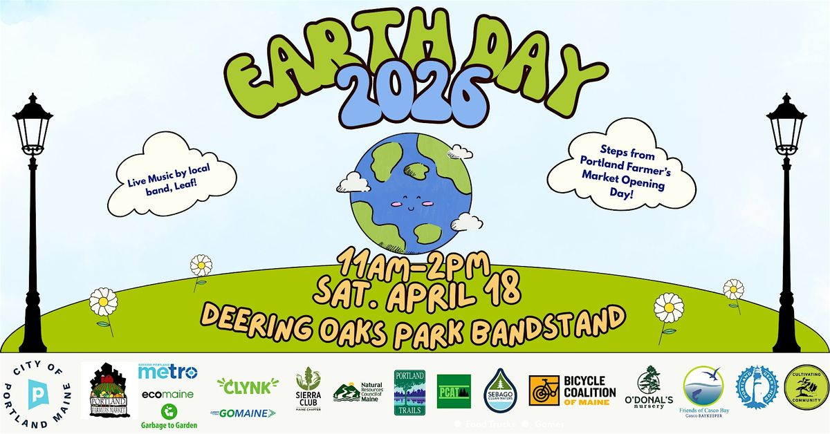 Join the City of Portland for a free, family-friendly Earth Day Celebration on Saturday, April 18 from 11:00 AM – 2:00 PM at Deering Oaks Park by the Bandstand, just steps from the opening day of the Portland Farmers’ Market.
