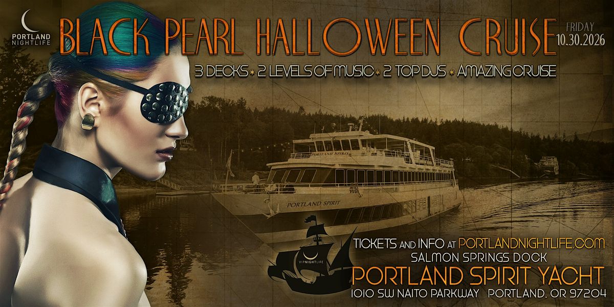 Most popular Halloween party cruise in Portland: The Black Pearl is on the Portland Spirit Yacht with 3 Decks, 2 Live DJs and Amazing Views!About this Event