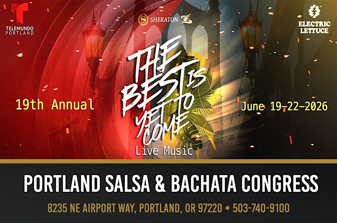 THE BEST IS YET TO COME !!! Portland Salsa Bachata Congress, ALL AGES ARE WELCOME at the Sheraton Airport hotel. Free Parking, full bar, FUNAgenda
