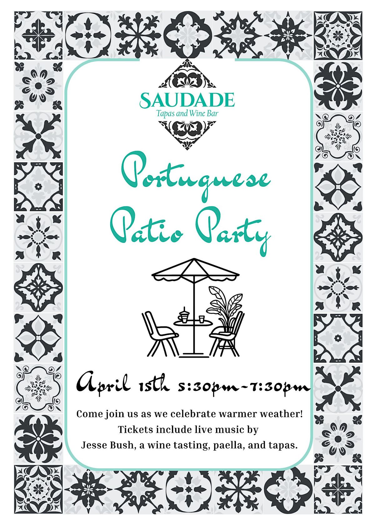 Your ticket includes tastings of four different Portuguese wines, live music by Jesse Bush, and our patio party food. Alcoholic and non-alcoholic beverages available for purchase.