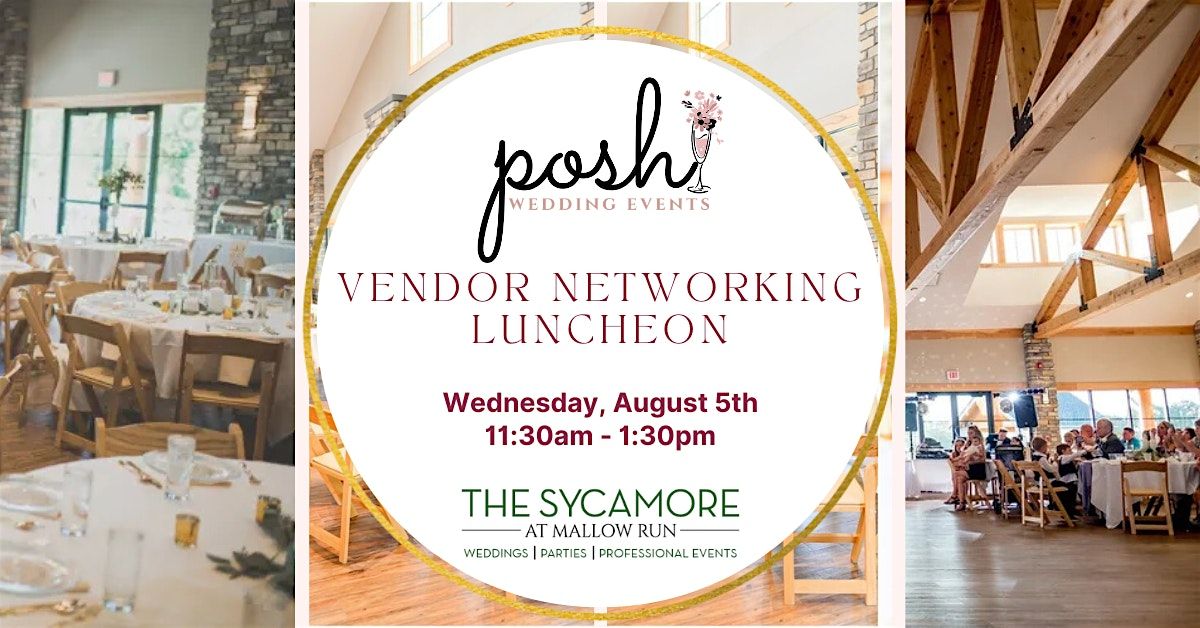 Posh Wedding Events invites Central Indiana wedding and event vendors to join for an afternoon of fellowship, fun wines, and fabulous food - with a focus on building our professional circles - on Wednesday, August 5th at The Sycamore at Mallow Run.