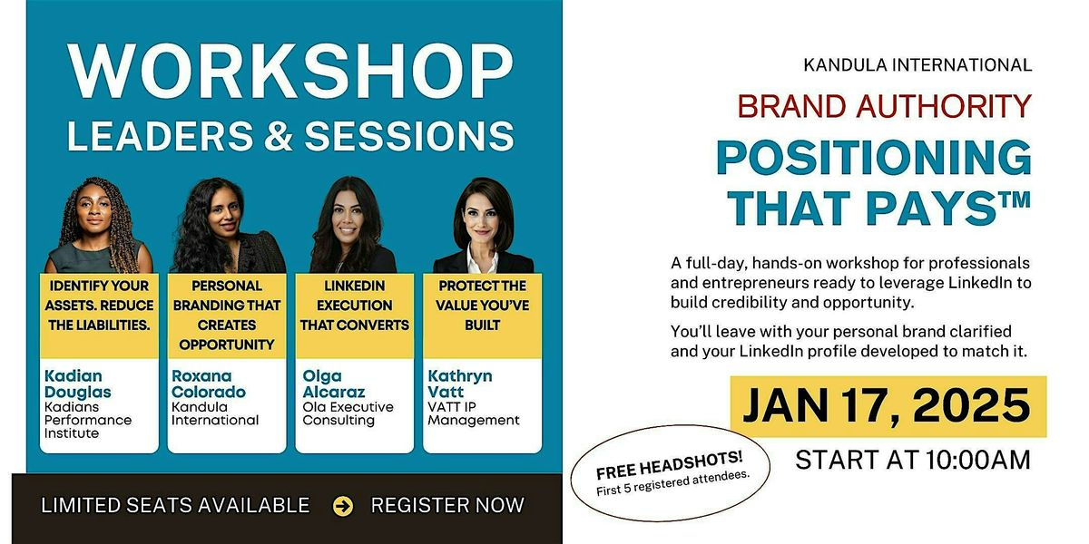Positioning That Pays™ is a hands-on workshop for professionals and entrepreneurs ready to leverage LinkedIn to build credibility and opportunity.
