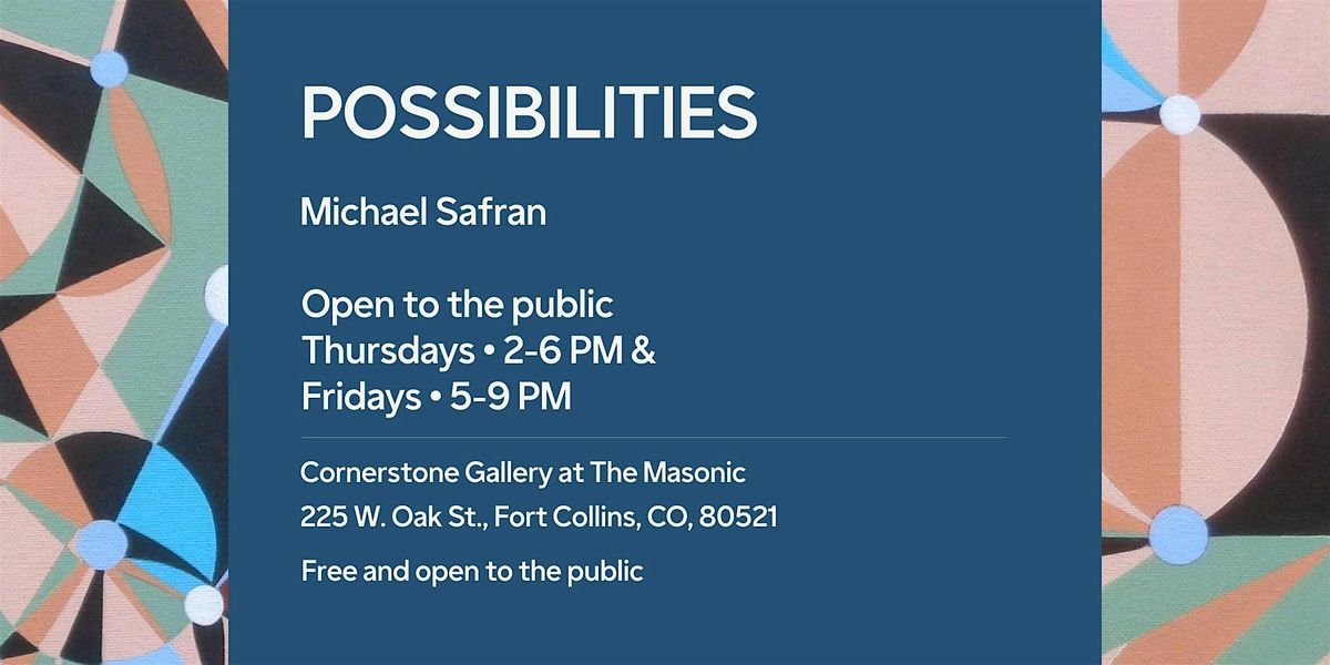 "Possibilities" is a solo exhibition presented by Michael Safran at the Cornerstone Gallery from March 7th - May 2nd, 2026.