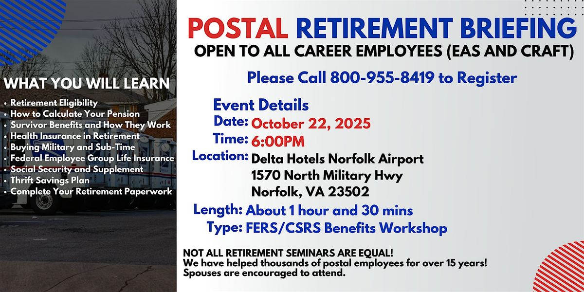 This seminar is ideal for postal employees at any stage of their career who want to plan for a secure