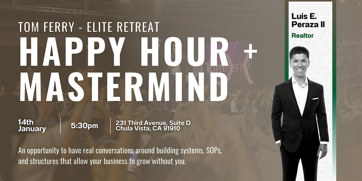 After taking the stage at Tom Ferry Elite Retreat, Luis Peraza is hosting a relaxed in-office happy hour for Tom Ferry exclusive agents who want to connect, unwind, and talk real business.
