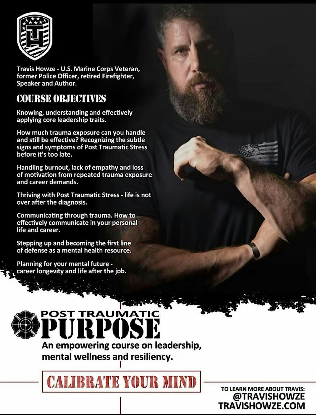 Travis Howze, known as The Motivational Speaker for First Responders and their families, is an international touring speaker, author, and motivational wellness educator who spent 14 years in the military and emergency services as a U.S. Marine, Police Officer and Firefighter.