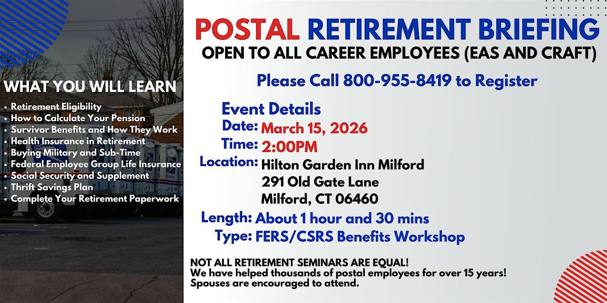 This seminar is ideal for postal employees at any stage of their career who want to plan for a secure