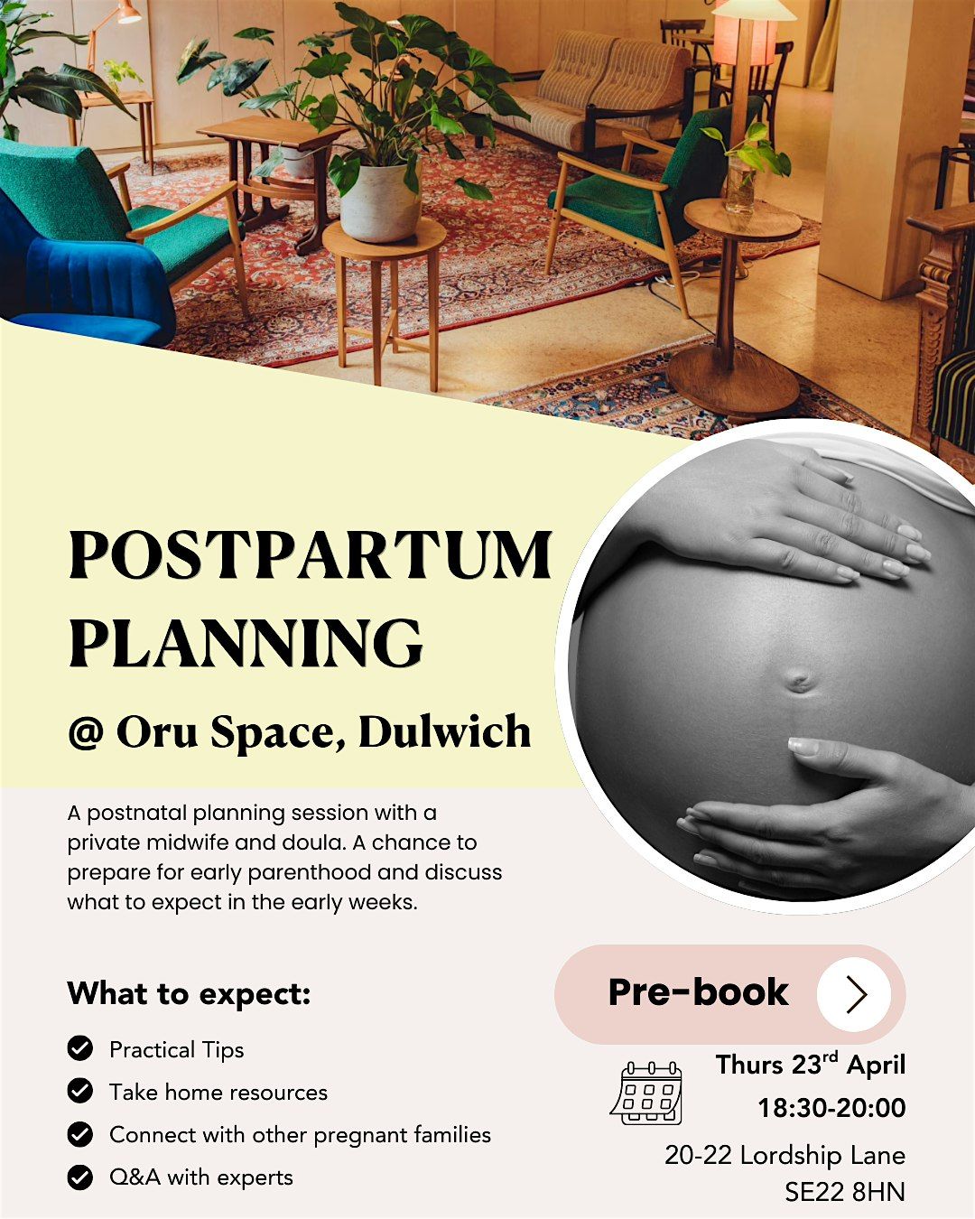 Join us a for Postpartum Planning session. An in-person event where we’ll dive into everything you need to know about life in the early weeks after your baby arrives. It’s a relaxed space to share tips, ask questions, and get prepared for those early weeks. Whether it’s managing sleep, meals, or self-care, we’ve got you covered. Come along, meet other parents-to-be and learn, and get prepared for your postpartum journey!