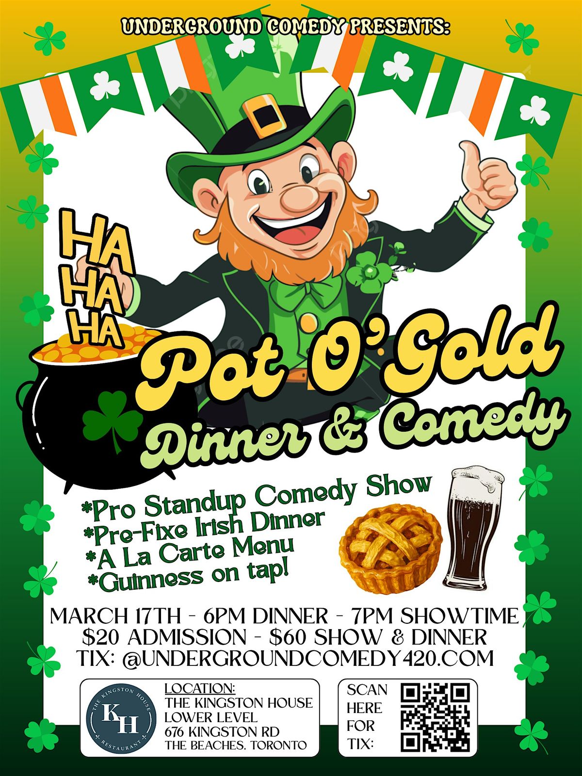 Join us for a St Patricks Day feast and comedy show! Prefix dinner & a la carte menu.