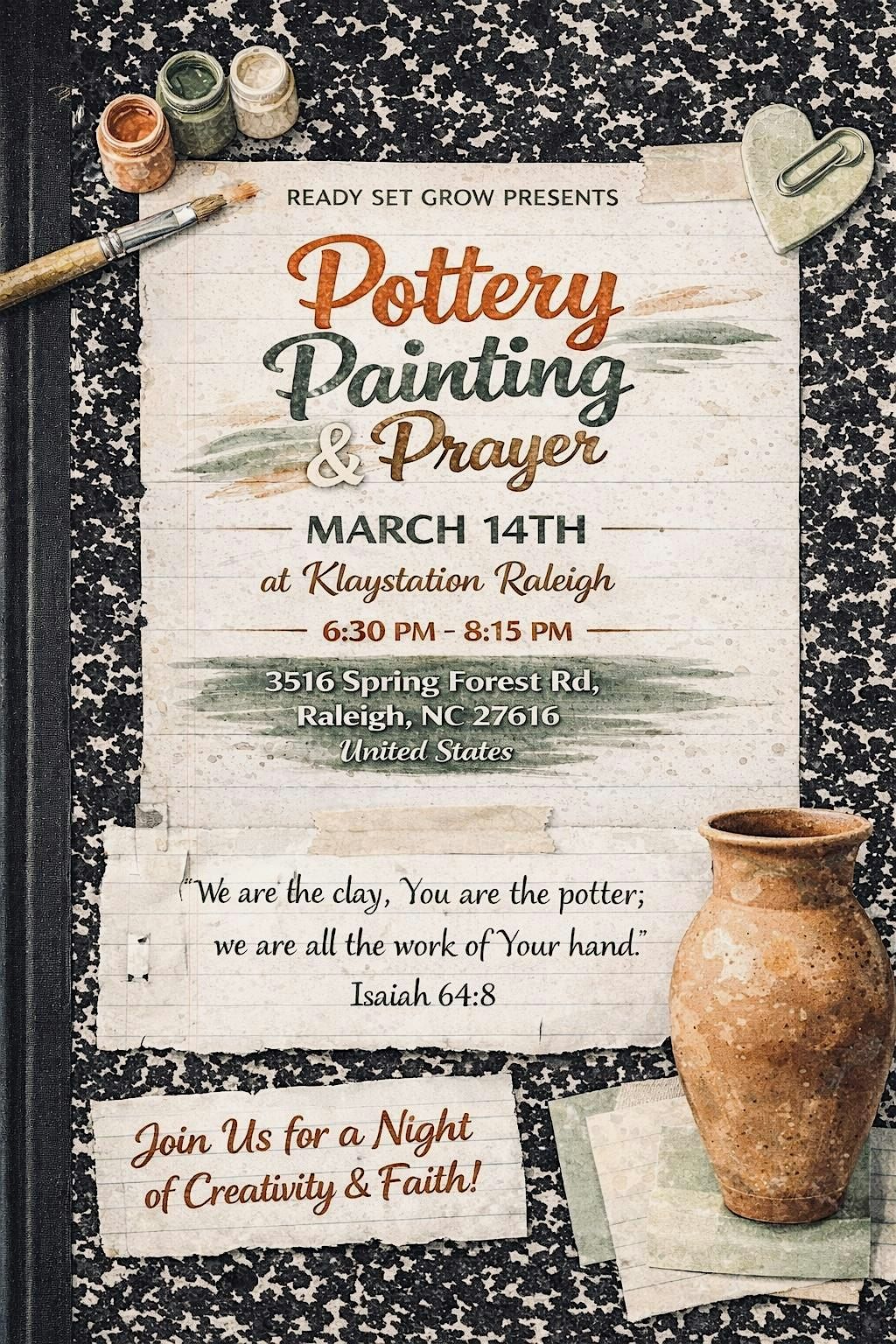 Ready Set Grow is hosting a beautiful evening of creativity, connection, and faith! Join us as we slow down, paint, pray, and pour into our spirits together.
