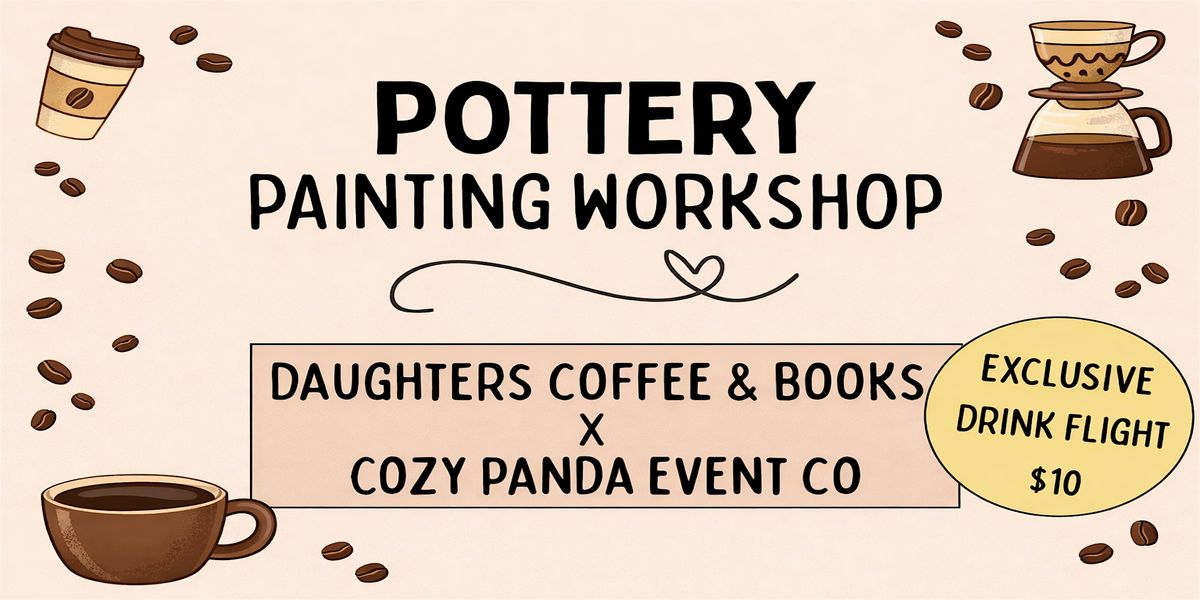 Join us at Daughters Coffee & Books for a cozy pottery painting workshop!