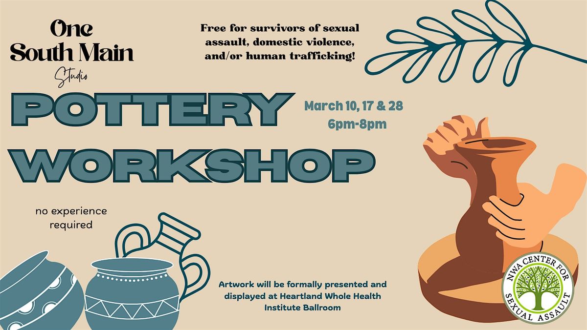 Join us for a free, three-session ceramics class created especially for adult survivors of sexual assault, domestic violence, and human trafficking. This is a safe and welcoming space to relax, connect, and explore creativity through working with clay. No prior experience is required, and all materials are included! Register here: https://www.nwasexualassault.org/art-workshops-for-survivors . If you have any questions or would like more information, please contact Odalys at [email protected]