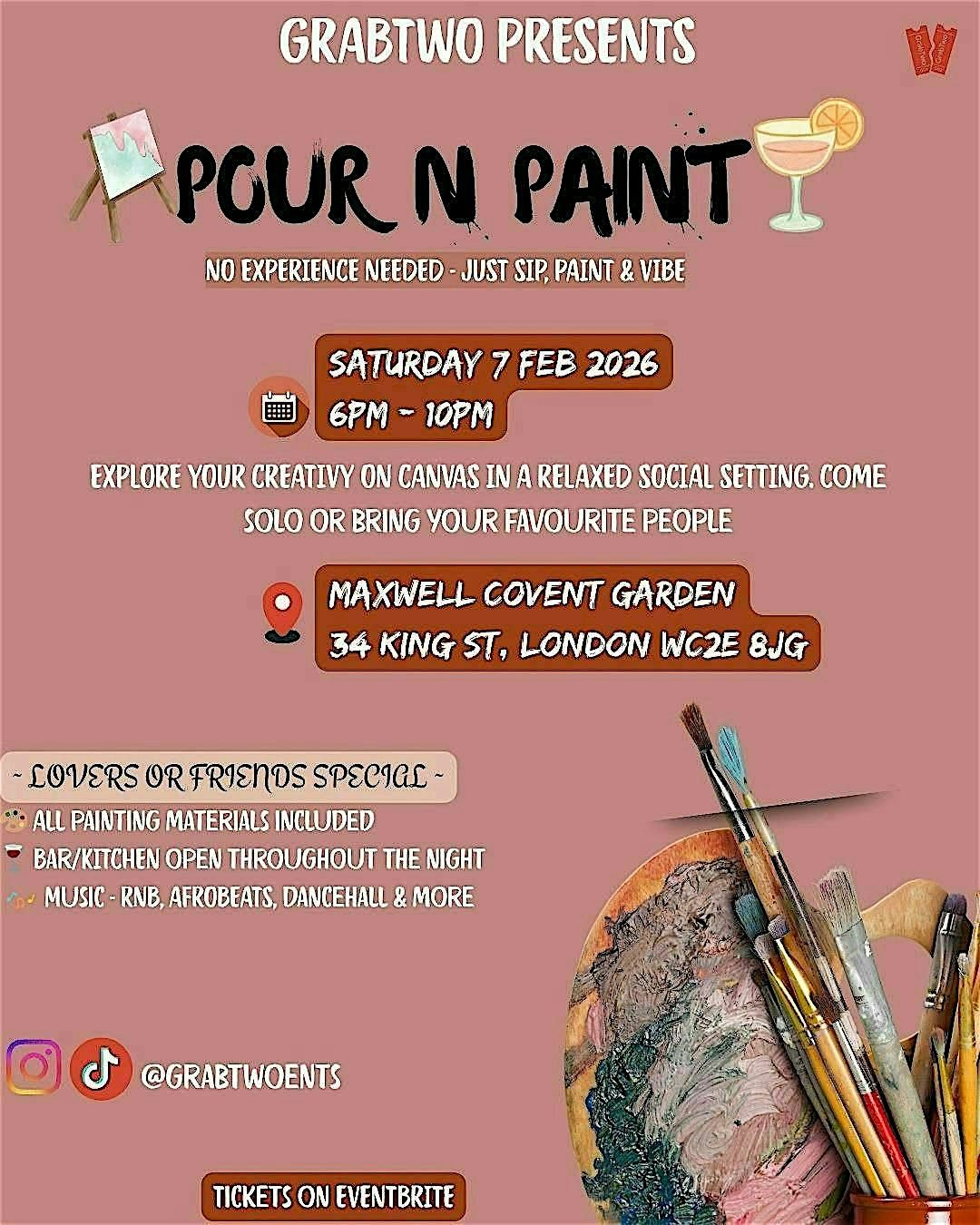 Ready to get creative with a drink in hand? POUR AND PAINT is the perfect sip-and-paint hangout where you can unwind, unleash your inner artist and vibe with fellow creatives. No fancy skills needed! just relax, sip and paint along with us. Expect good energy, colorful moments and a laid-back atmosphere where fun comes first. Let’s sip, paint, and make a little magic together. Don’t miss this artsy good time!