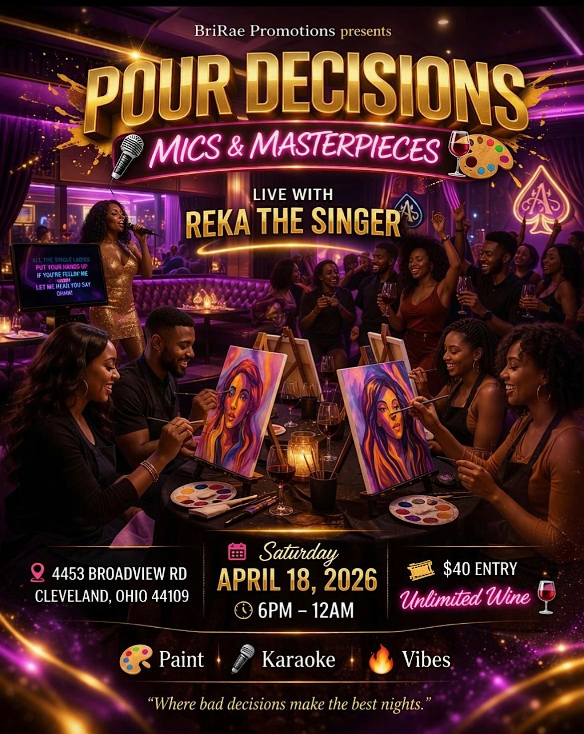 Come on out for a night of fun good vibez wine and karaoke special guest REKA THE SINGER