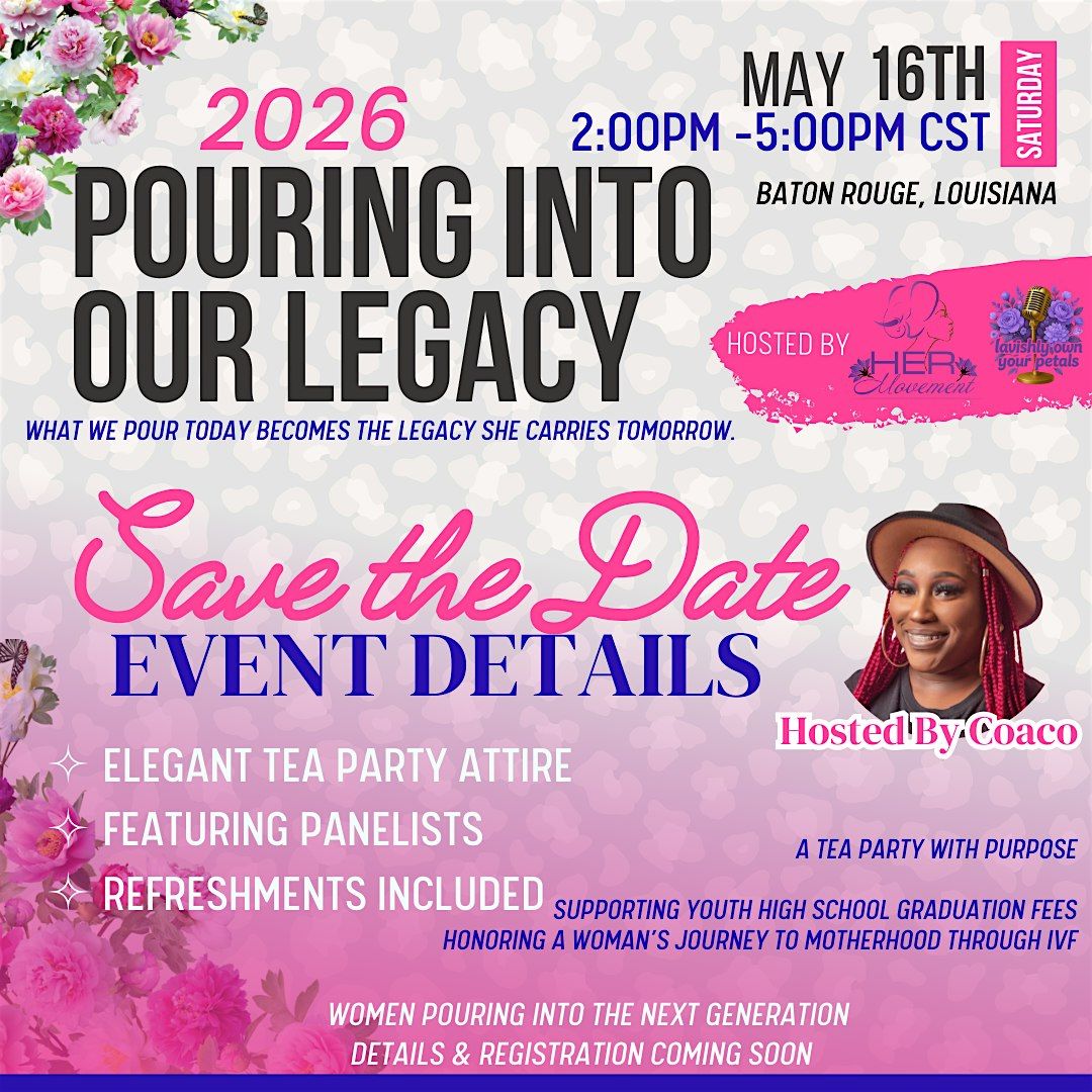 Join us for Pouring Into Our Legacy, a beautiful Mother’s Day weekend tea party celebrating the power of what women pour into the world -their daughters, sisters, and future generations.