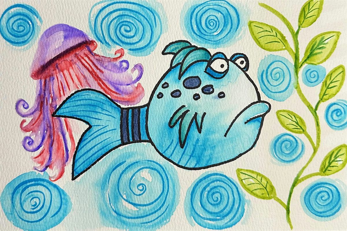Join us at the Oceanside Art Collective for a fun and relaxed watercolor session featuring the Pout Pout Fish illustration by Dan Hanna! This activity is good for all ages, but may require some parent help for the littles.