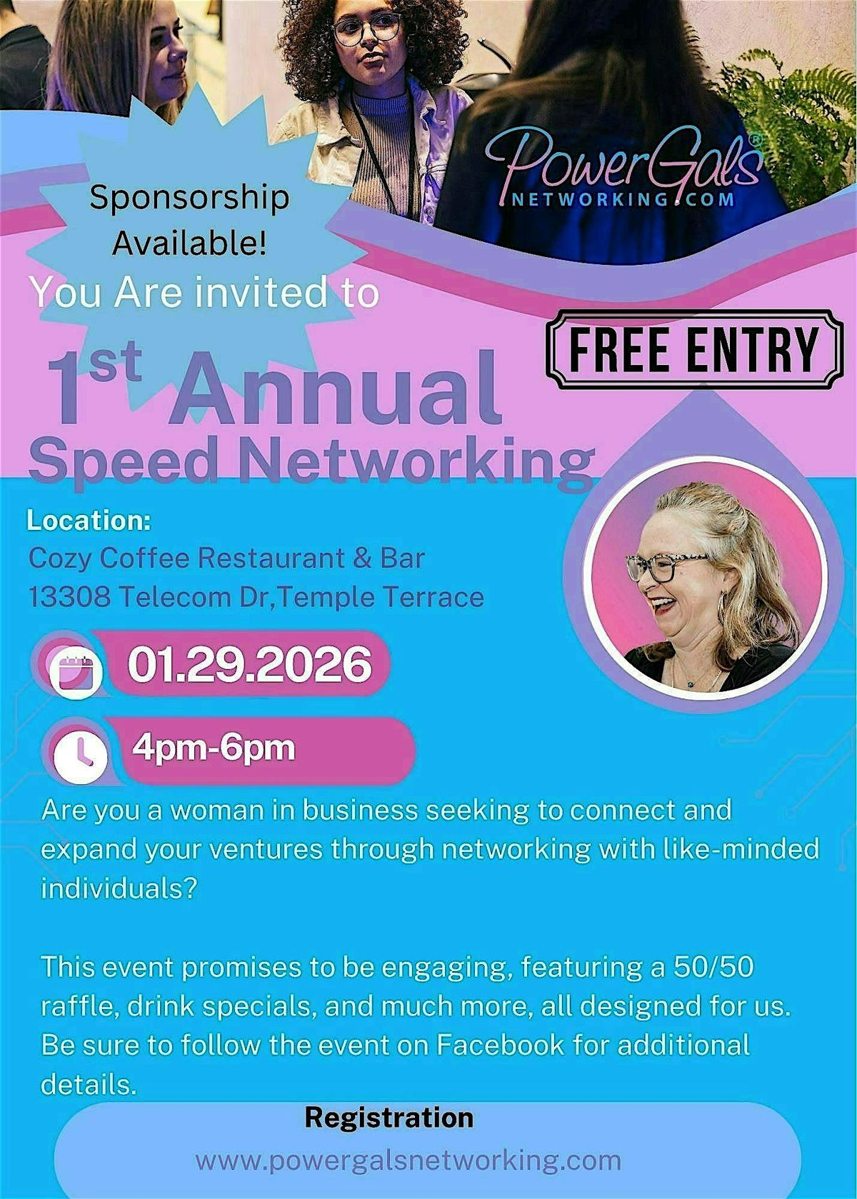 Get ready to mix, meet, and mingle at the POWER GALS 1st ANNUAL SPEED NETWORKING event! This is your perfect chance to connect in person with amazing women ready to empower, inspire, and collaborate. Whether you're looking to grow your circle or spark new ideas, come join the fun and build powerful connections one quick chat at a time! Don’t miss out on this exciting opportunity to boost your network and your vibe!