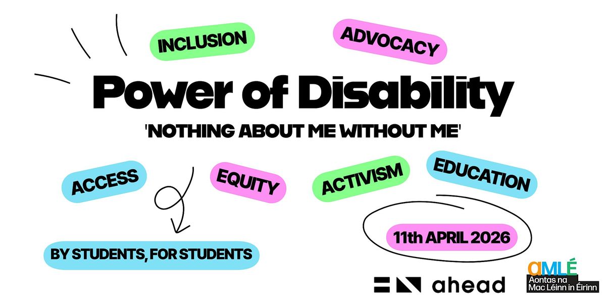 Power of Disability 2026 will run online from 10:30 am to 13:30pm. After our keynote address, there will be sessions on navigating college life, studying, and graduate employment as a student with a disability. Throughout the event, you'll be able to share your experiences and ideas with AHEAD and AMLÉ using an interactive whiteboard.