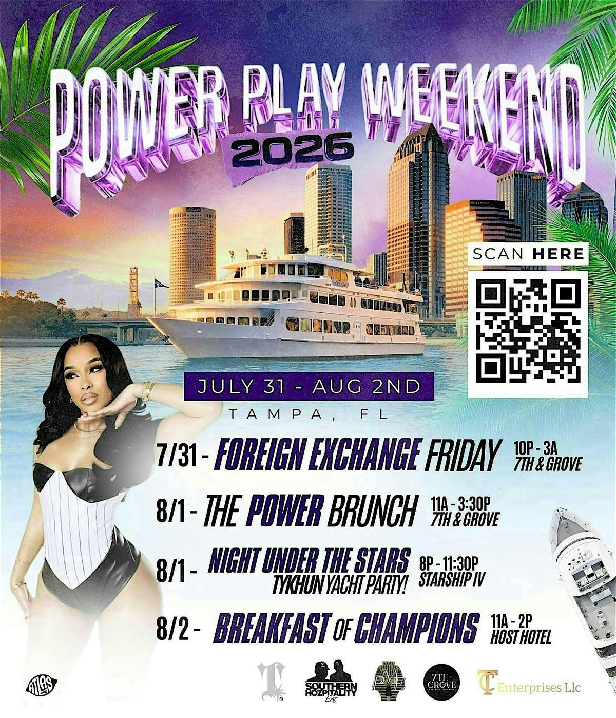 Info: signature kick off event. Guest can come check in for the wknd, get wristbands and info. Meet other Power Play guests, Party and enjoy one of Tampa's premier venues!