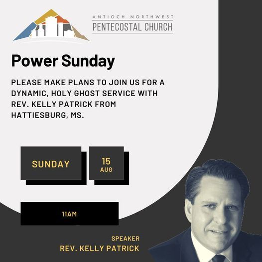 Join us for a powerful and anointed service with guest minister, Rev. Kelly Patrick from Hattiesburg, MS.