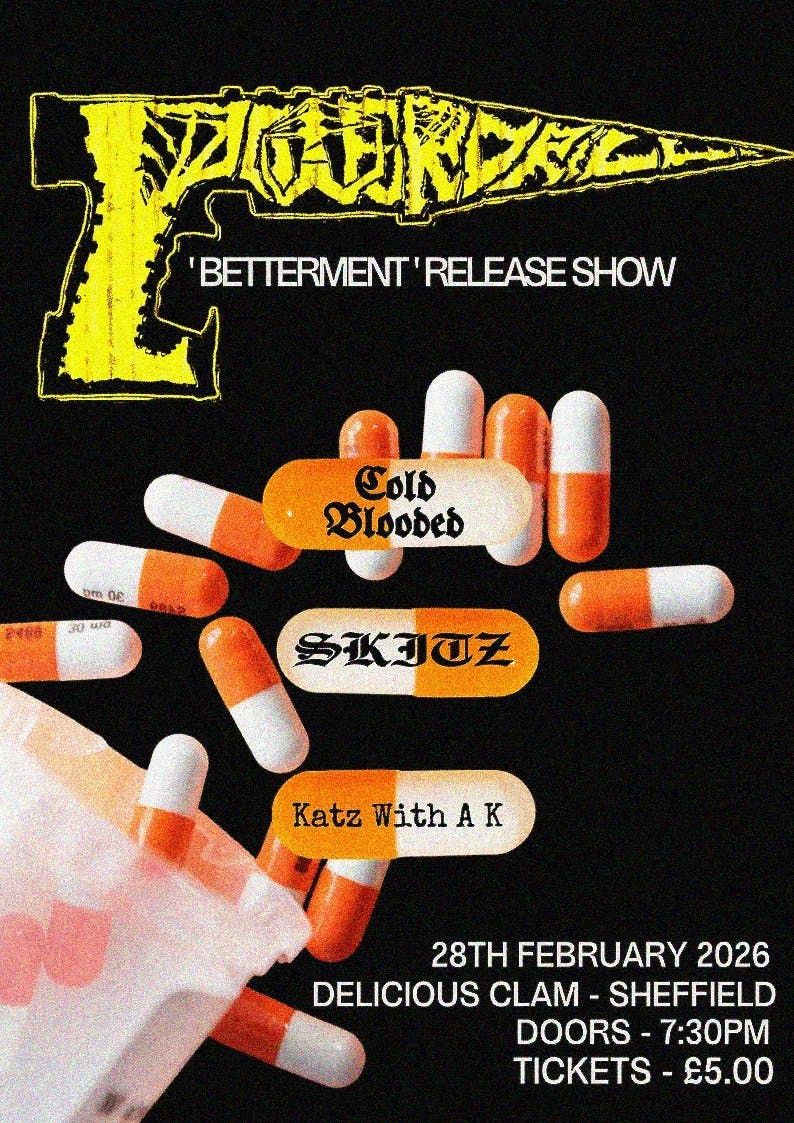 LIVE AT DELICIOUS CLAMPOWERDRILL - Showcasing their latest EP 'Betterment' after a hiatus, the steel city trio have refined their sound into a crushing and twisted take on hardcore that aims to bludgeon any in it's path.