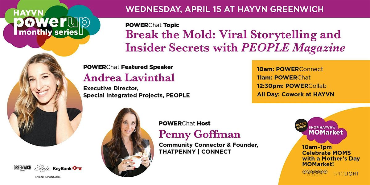 Plus POWERChat speaker & local mom Andrea Lavinthal, PEOPLE, will surely bring style & laughs in this special POWERUp MOM-edition at 11am with topic Break the Mold: Viral Storytelling & Insider Secrets with PEOPLE Magazine.... more below on that!