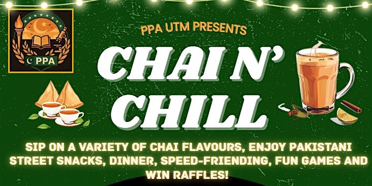 Welcome to PPA's Chai & Chill event! Join us at the University of Toronto Mississauga for a relaxing evening filled with delicious chai and good company. Take a break from your busy schedule and unwind with us as we sip on warm chai and enjoy some chill vibes. This in-person event is the perfect opportunity to meet new people, catch up with friends, and simply relax. Don't miss out on this cozy gathering!