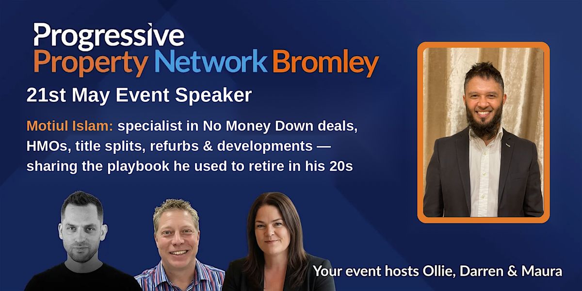 Progressive Property Network Bromley is a monthly networking event for property investors of every level. Hosted by Ollie, Maura and Darren, we bring together property professionals from across South East London and Kent for a no-nonsense, supportive evening of expert speakers, real-world strategy and genuine community.