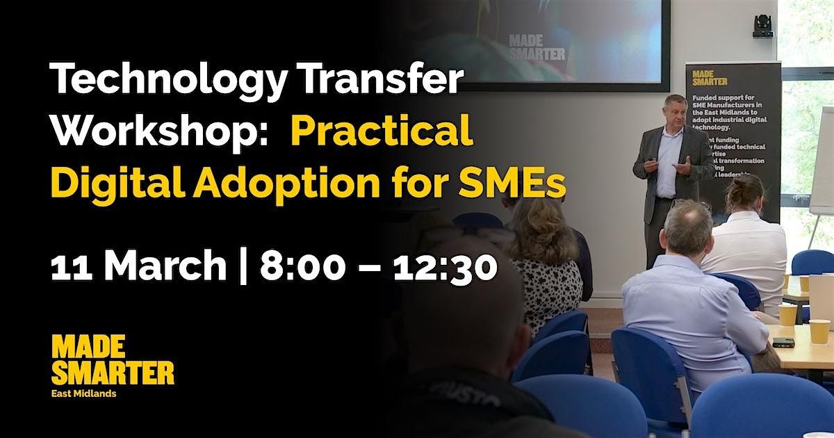 Made Smarter East Midlands invites micro and SME manufacturers across the East Midlands to a free, practical technology transfer event focused on how digital technologies are being adopted in real manufacturing environments - what works, what doesn’t, and how to avoid costly trial and error.